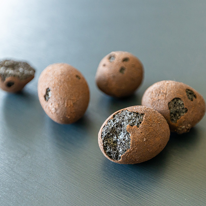 Ceramsite is a lightweight, porous inorganic aggregate with a much lower density than traditional fillers. Adding it significantly reduces the overall weight of the board, simplifying transportation and installation.